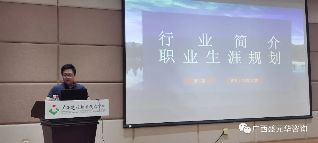 8月28日下午,受廣西建設(shè)職業(yè)技術(shù)學(xué)院管理工程學(xué)院邀約,廣西盛元華總經(jīng)理助理、總工程師謝宇翔出席參加了管理工程學(xué)院2023級(jí)造價(jià)班全體新生的開(kāi)學(xué)第一課,并在課上向新生們做了關(guān)于職業(yè)培養(yǎng)的專業(yè)教育。